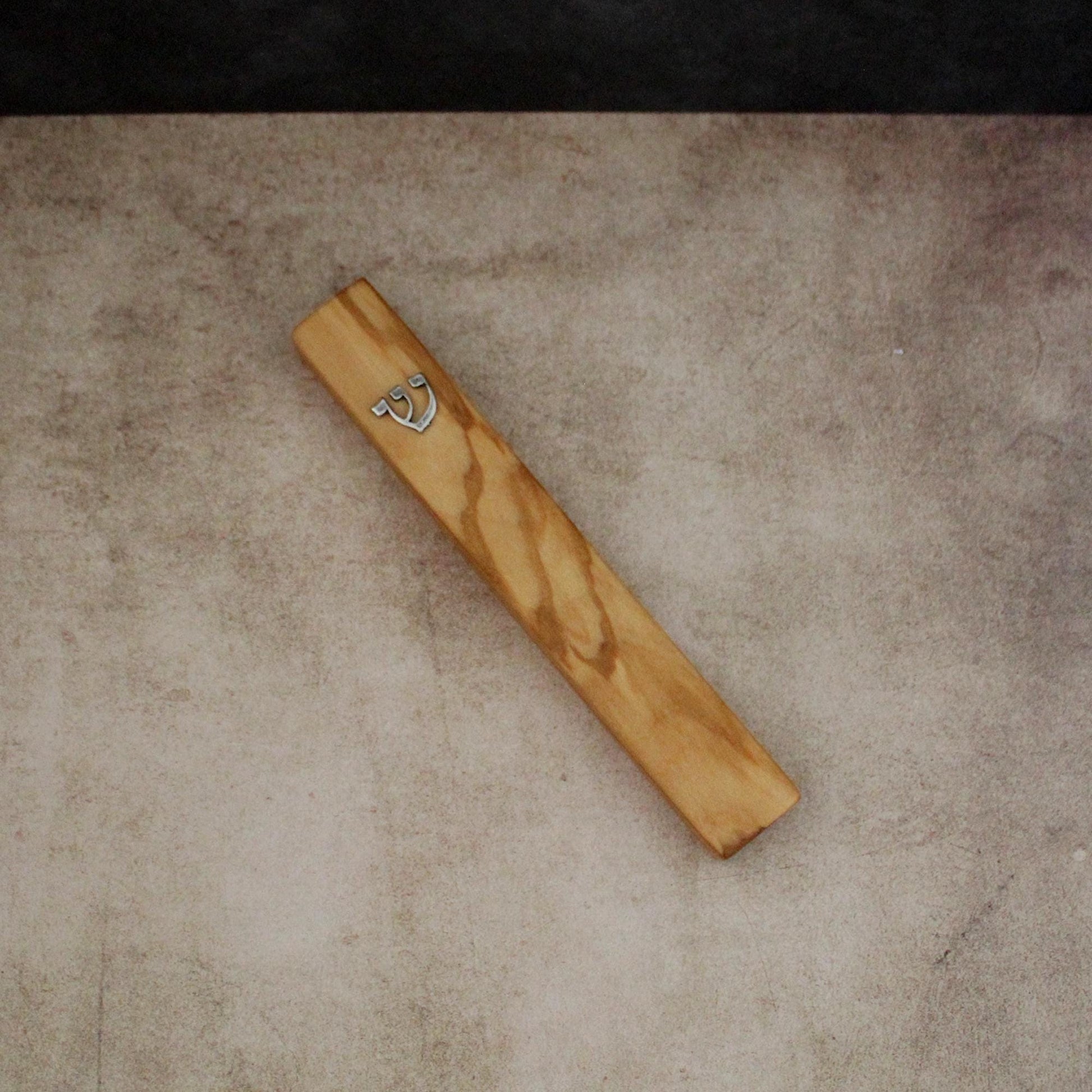 14cm / 5.5" Olive Wood Mezuzah Case from Jerusalem With the Letter "SHIN" in Silver, Gift for Jewish Housewarming, Scroll Up to 12cm / 4.72"