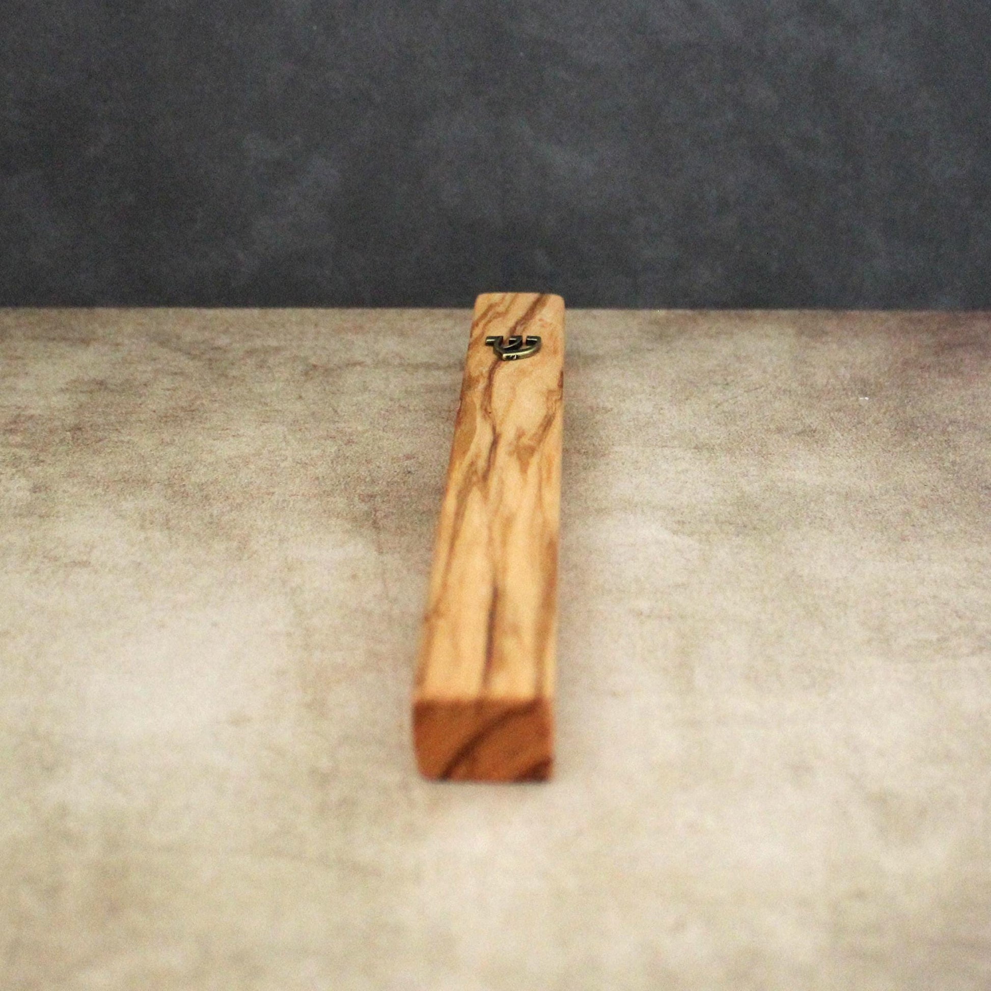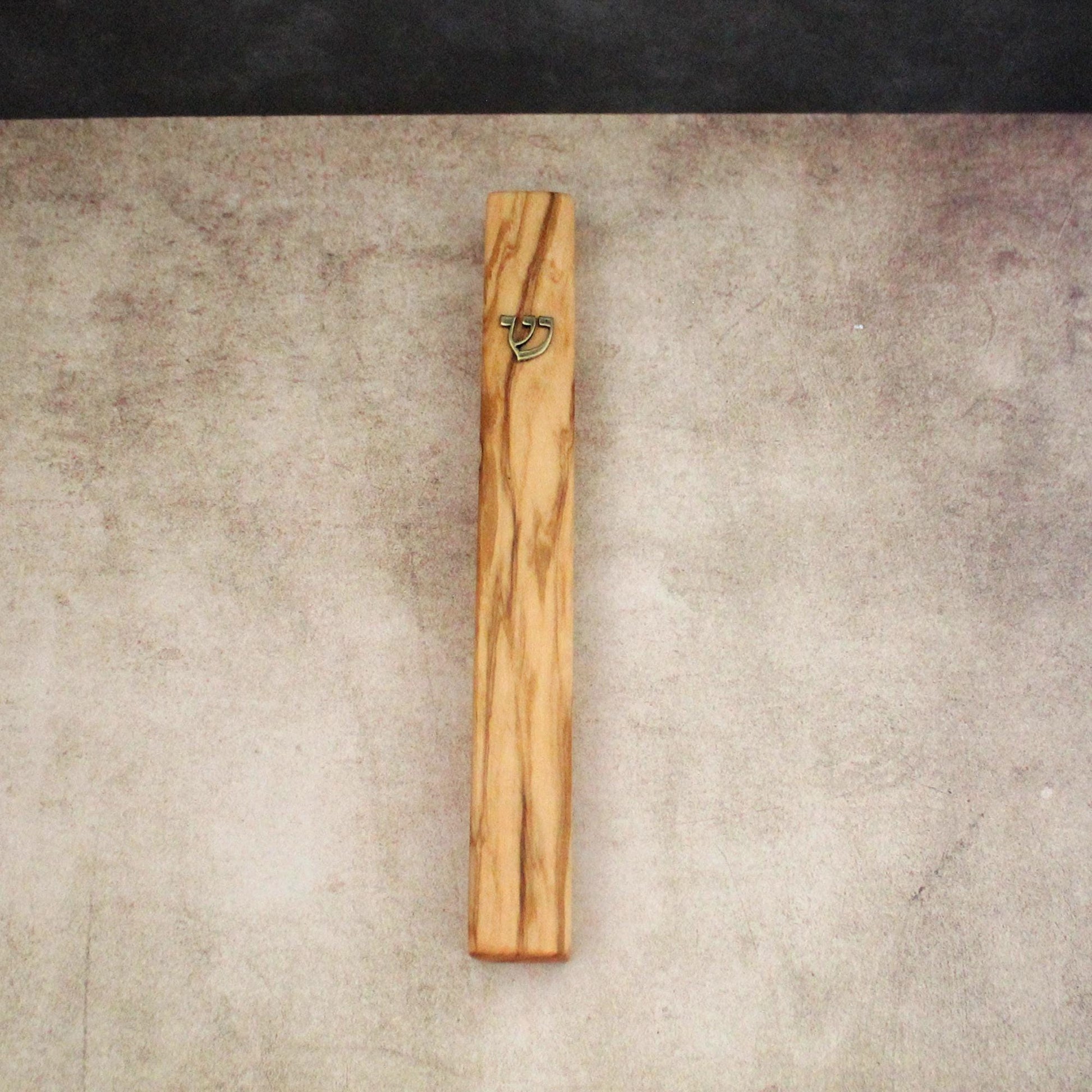 17cm / 6.69" Olive Wood Mezuzah Case from Jerusalem With the Letter "SHIN" in Bronze, Gift for Jewish Housewarming, Scroll Up to 15cm / 5.9"