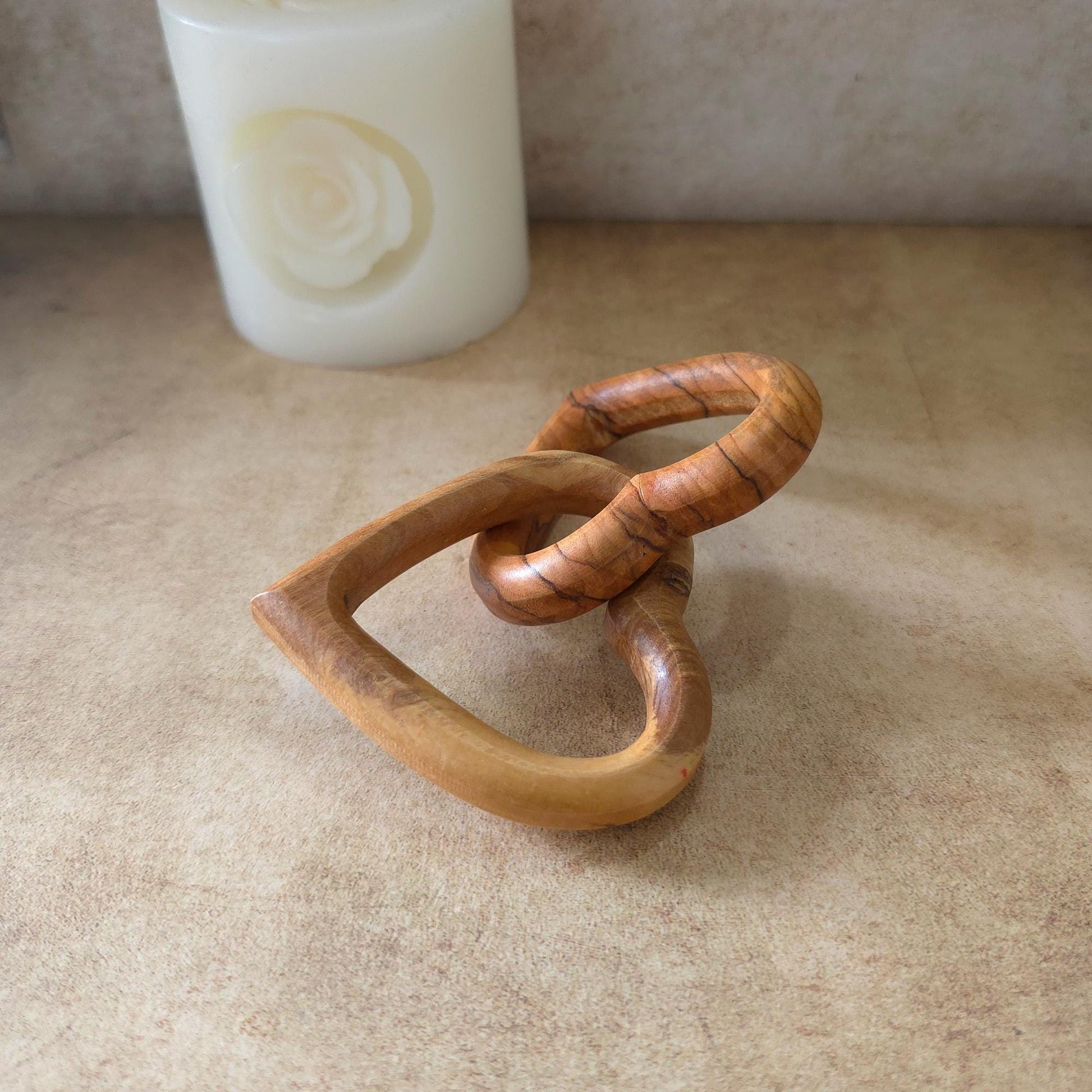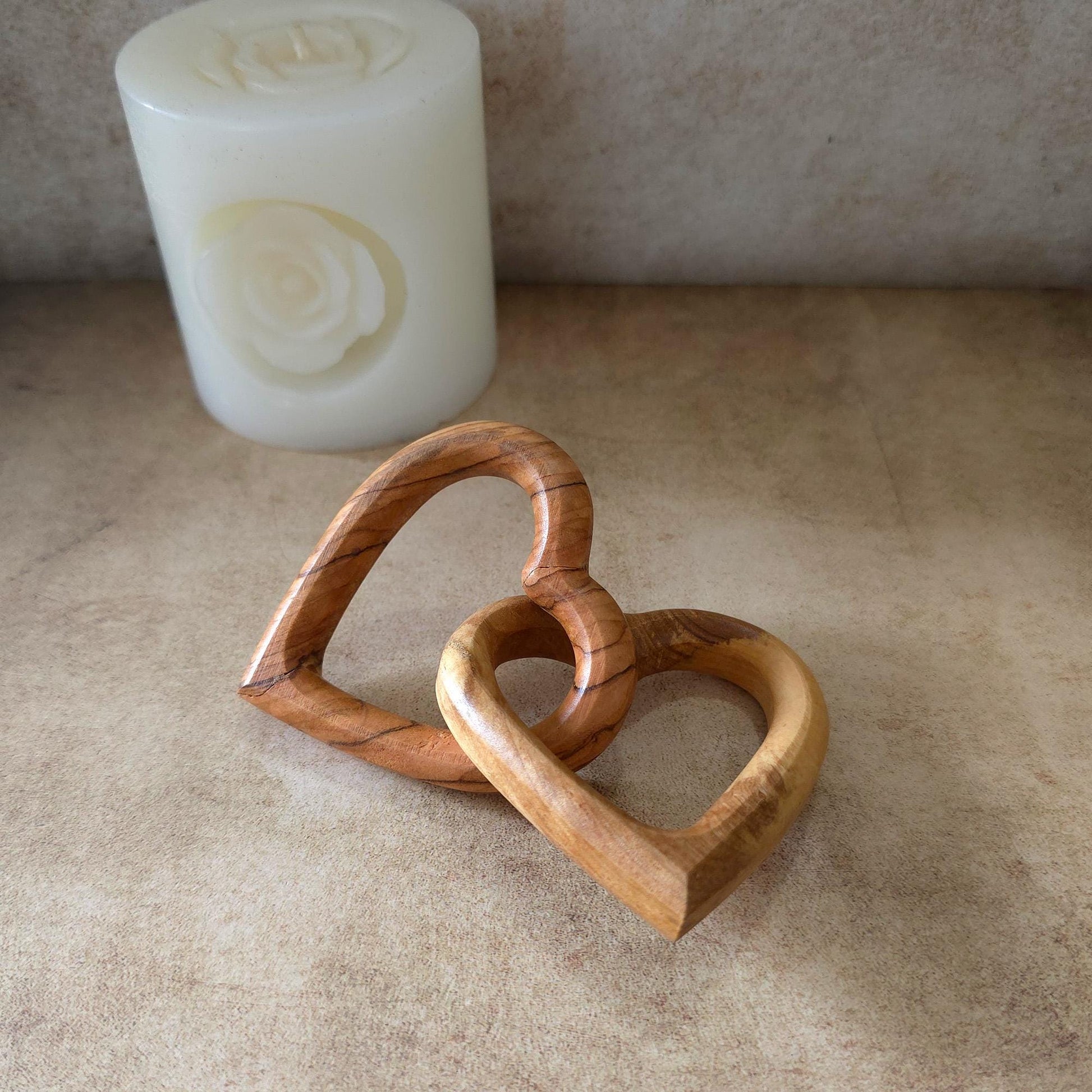 Get Two 2.7" Olive Wood Interlocking Hearts, Gifts for Her, Girlfriend, Boyfriend, Couples, Engagement, Wedding Gift, Valentine’s Day Gift