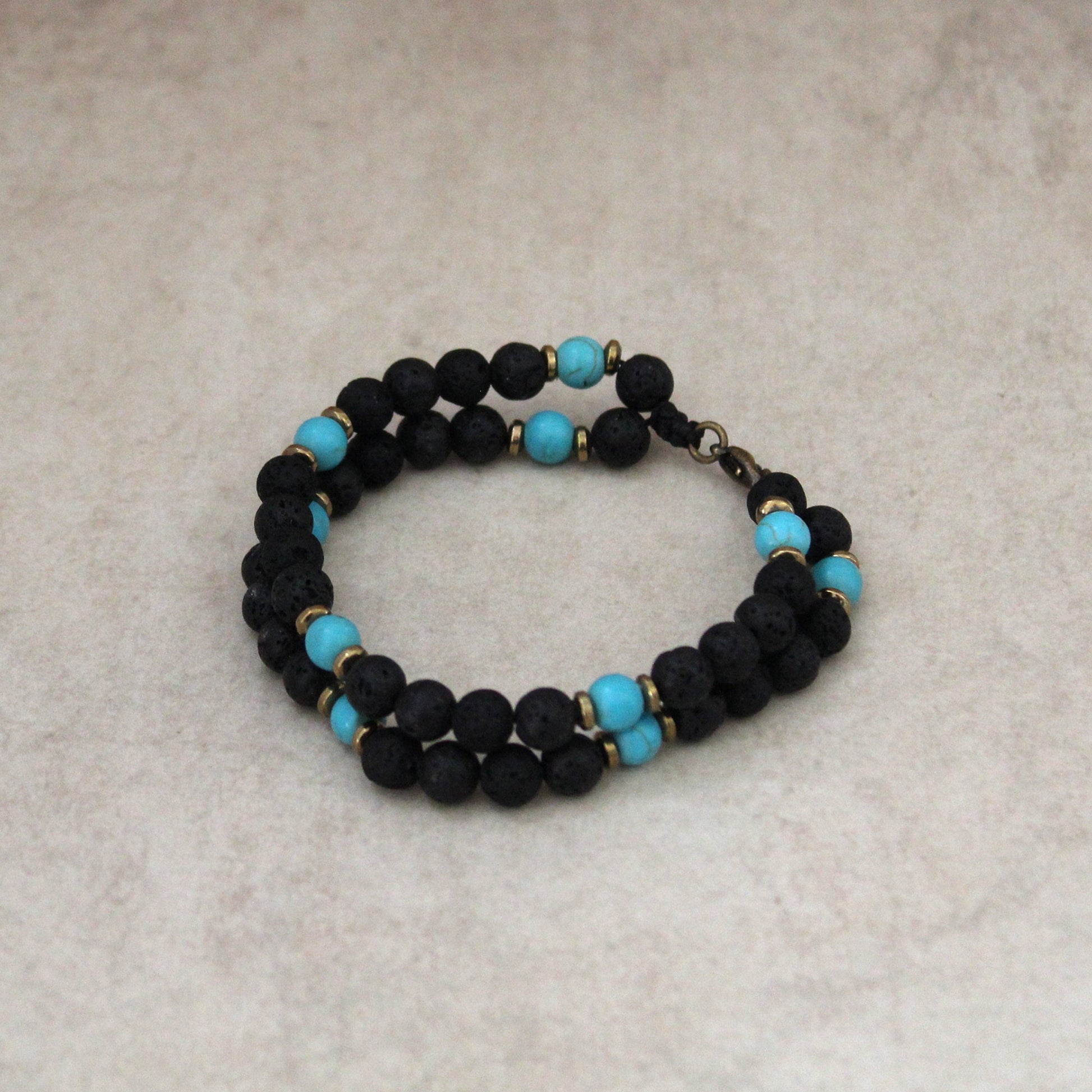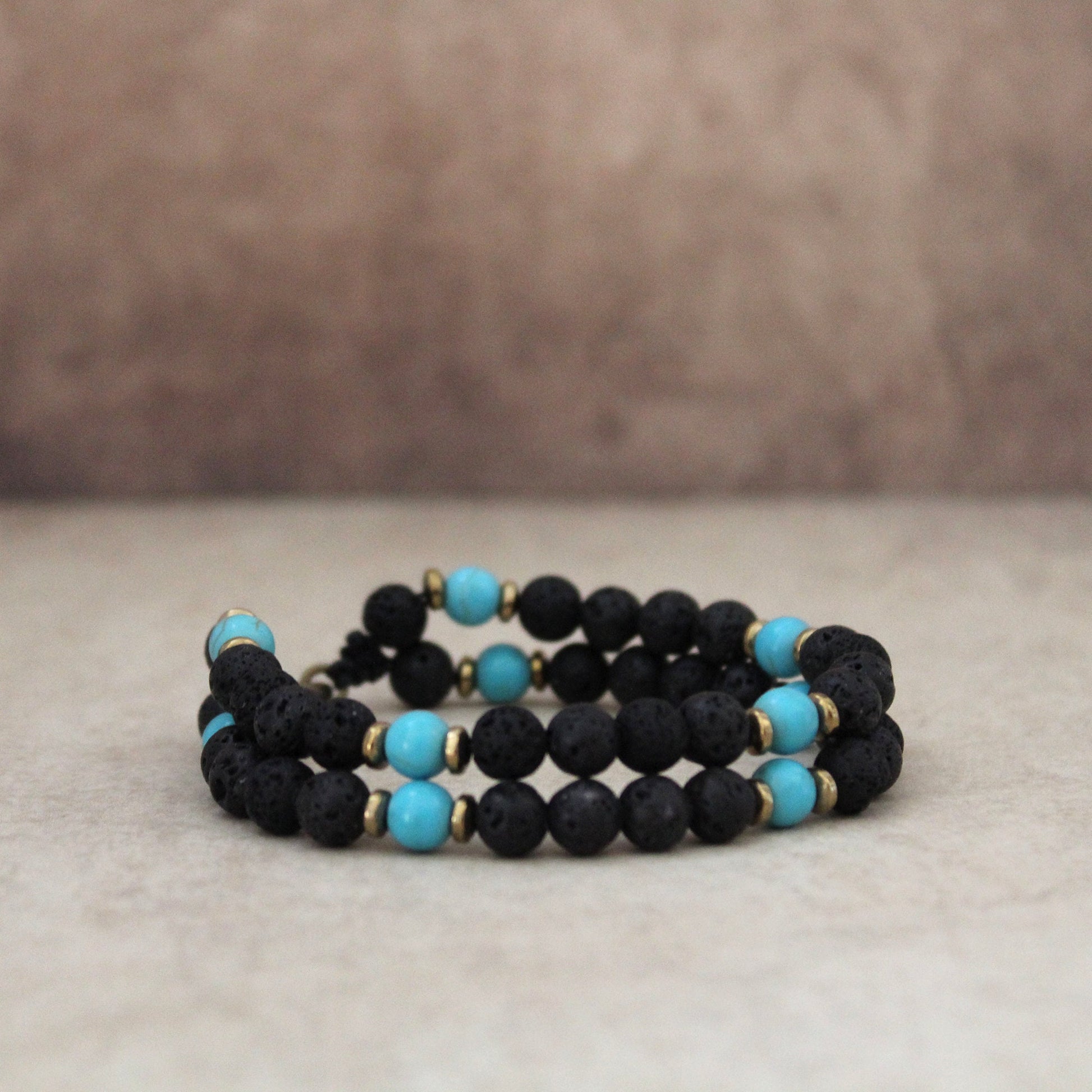 Men’s Double Bracelet Black Bracelet Lava Stone and Turquoise Beads Bracelet Gemstone Bracelet Onyx Bracelet Beaded Bracelet Black Bracelet.