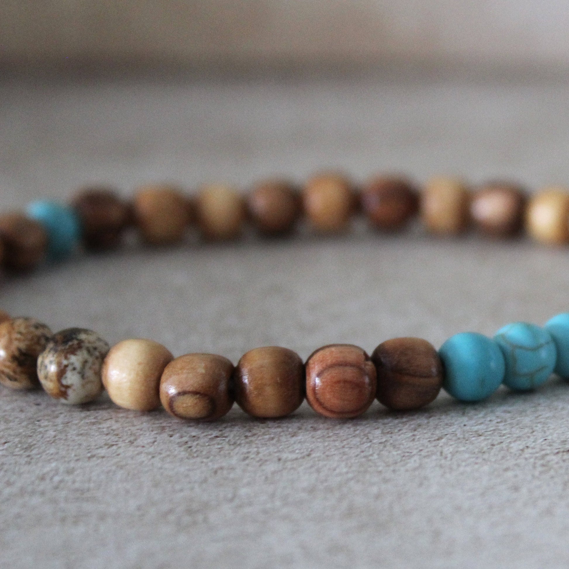 Introducing our handcrafted Hebrew jewelry from Israel - olive wood and jasper crystal bead stretch bracelet. This stunning accessory features small beads made of olive wood, crystal stone beads, and jasper, adding a touch of elegance and earthy charm to your style.