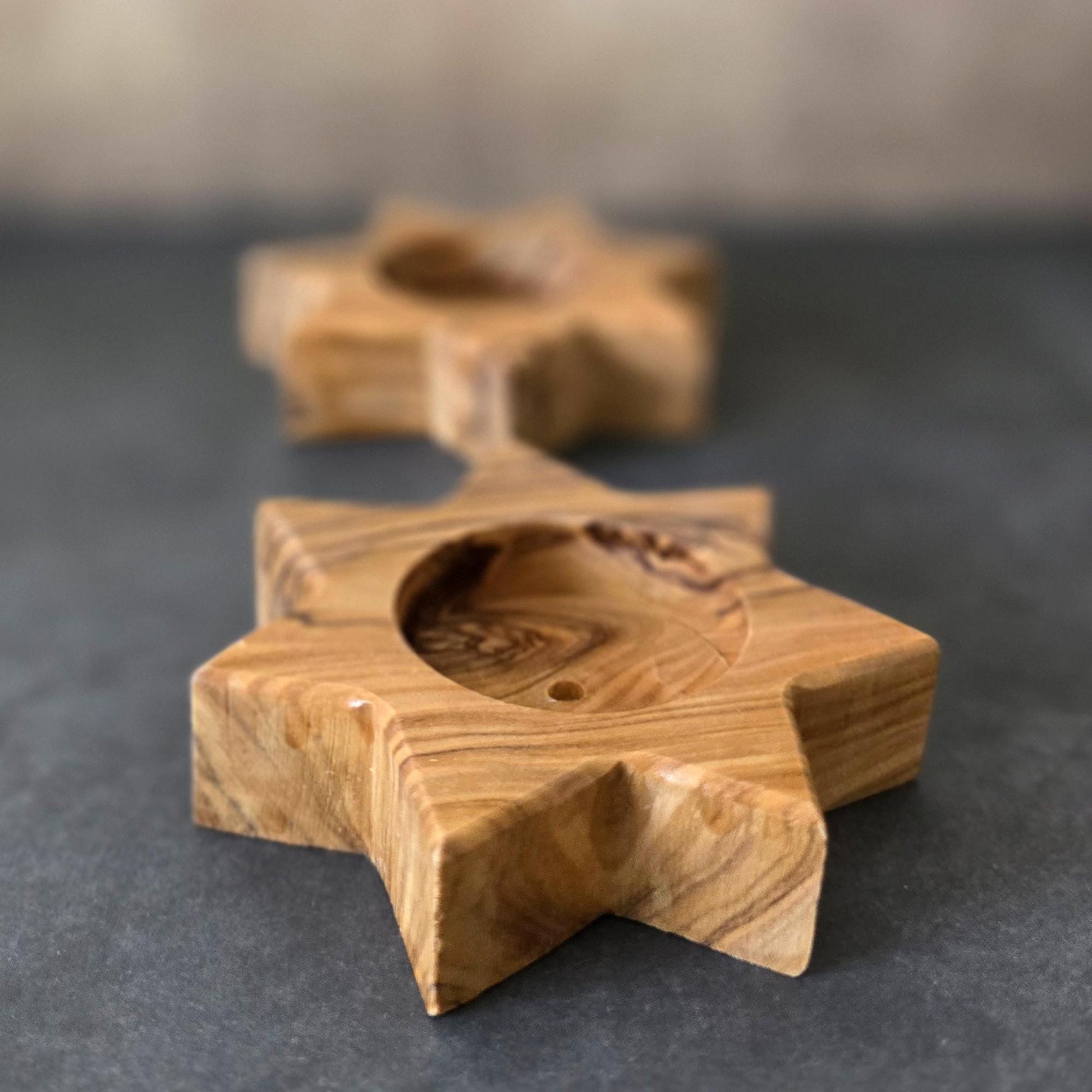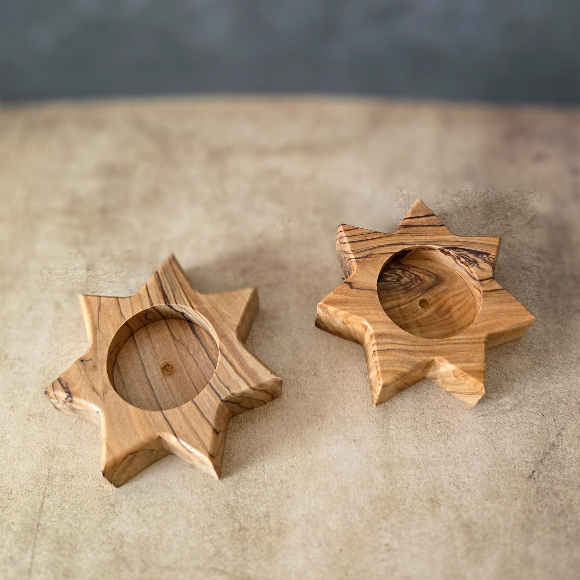 Pair of Handmade 7 Point Star Tealight Holders, Wooden Candle Holders, Hand Crafted Olive Wood Candle Holders, Hand Made Gift Home Decor