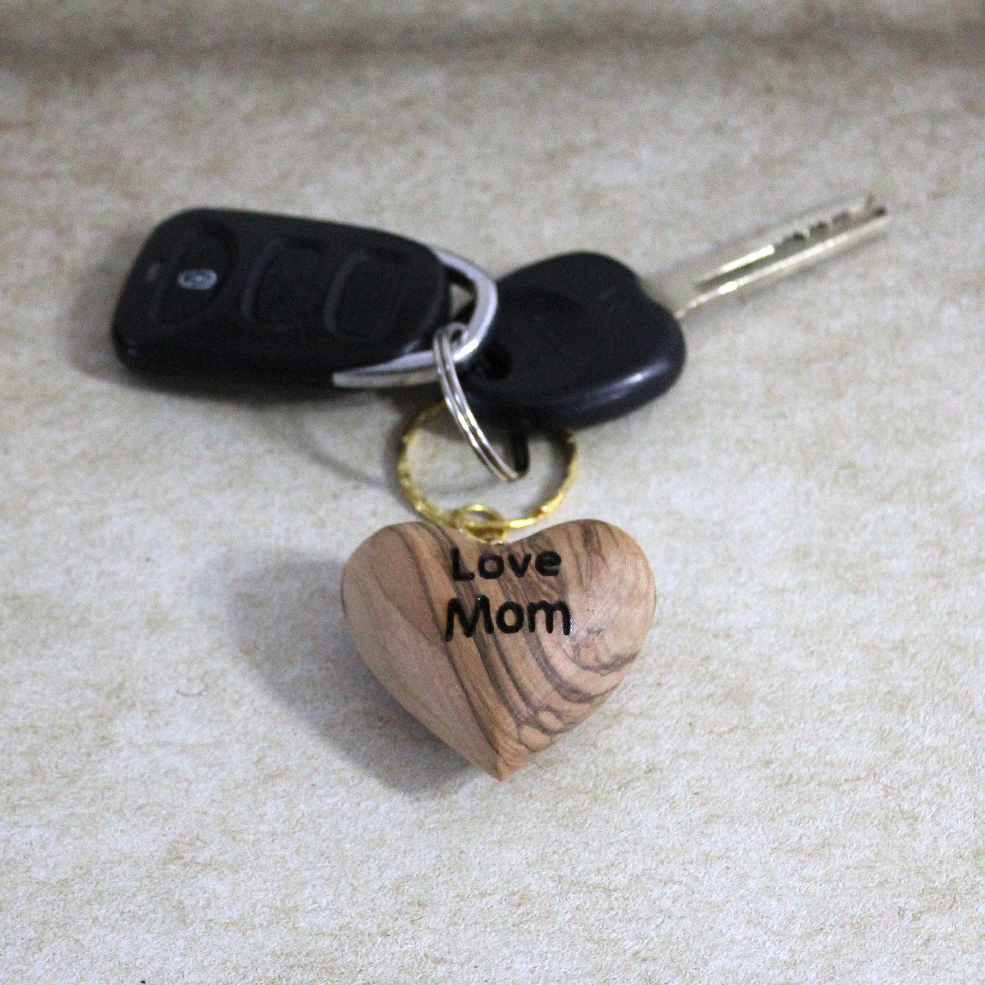 This gorgeous, personalized olive wood heart keyring is handcrafted in Jerusalem. It includes a keyring for easy portability, making it an ideal gift for loved ones or yourself.